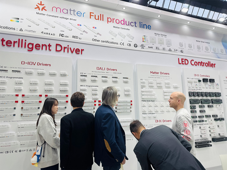现场展出Matter智能电源,让商业、居家空间都能实现跨生态一站式智控;LF系列线性智能电源,提供内置/外置两套系列产品,整体设计严格符合Zhaga Book 13与Book 24标准。