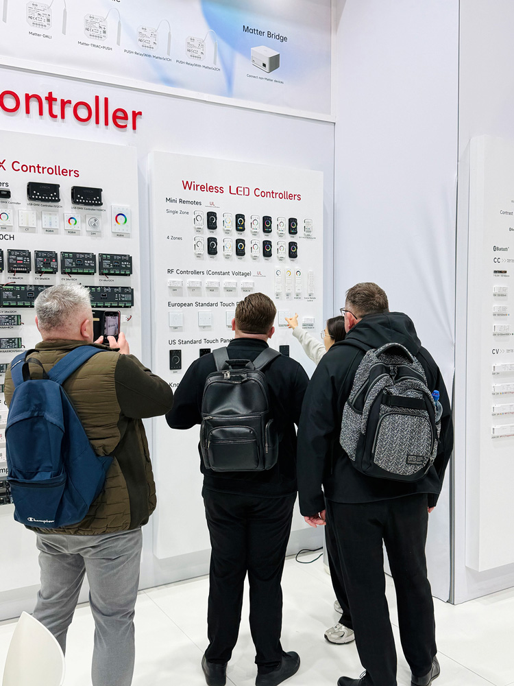 重磅推出Matter控制器,各类大型灯光项目皆可以实现 “跨品牌协同”;高低压防水控制器、大功率户外防水电源,支持NFC近场编程,轻松驾驭楼宇亮化、节日灯饰等复杂场景;K系列智能控制模块,让传统开关插座轻松变智能;以及有线+无线二合一智能旋钮、DMX512+蓝牙2合1美规触控编程面板及智控面板等,轻松打通有线及无线控制方案。