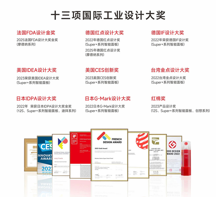 小雷智能家居重塑智能生活的美学定义!摩德纳・超级智能面板系列凭借突破性的设计理念与卓越的产品实力,一举斩获法国设计大奖(FDA)金奖!法国设计奖由国际设计奖协会(IAA,International Awards Association)创立于法国,由全球顶尖设计专家组成的评审团严苛评选,作为一项享有盛誉的全球盛事,法国设计奖吸引了全球和各行业的领先品牌,其中包括财富500强企业及行业巨头。