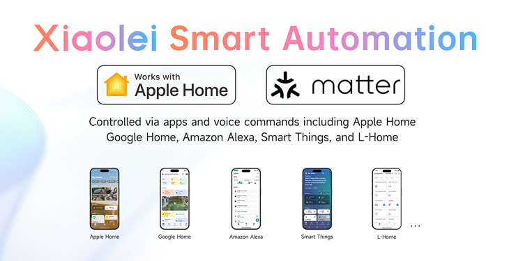 Developed by Xiaolei Smart Automation, our smart home system built on native Matter protocol.boasts in-depth integration with Apple Home ecosystem and seamless connectivity to global open smart home platforms including Google Home Amazon Alexa and Samsung SmartThings.It enables cross-brand interconnection for smart devices worldwide.