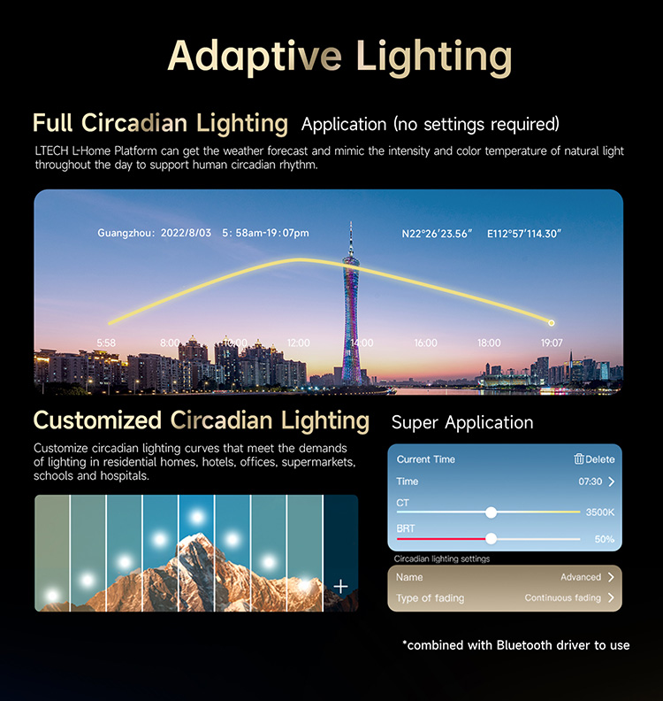 LTECH, which has been deeply engaged in the field of lighting intelligent control for more than 20 years, has injected strong technical genes into Xiaolei Smart Automation. Thanks to the adaptive intelligent lighting technology, users can customize full natural rhythm light recipes on the APP. In the morning, cold high light is used to awaken vitality, and in the evening, warm and soft light is used to soothe the body and mind.