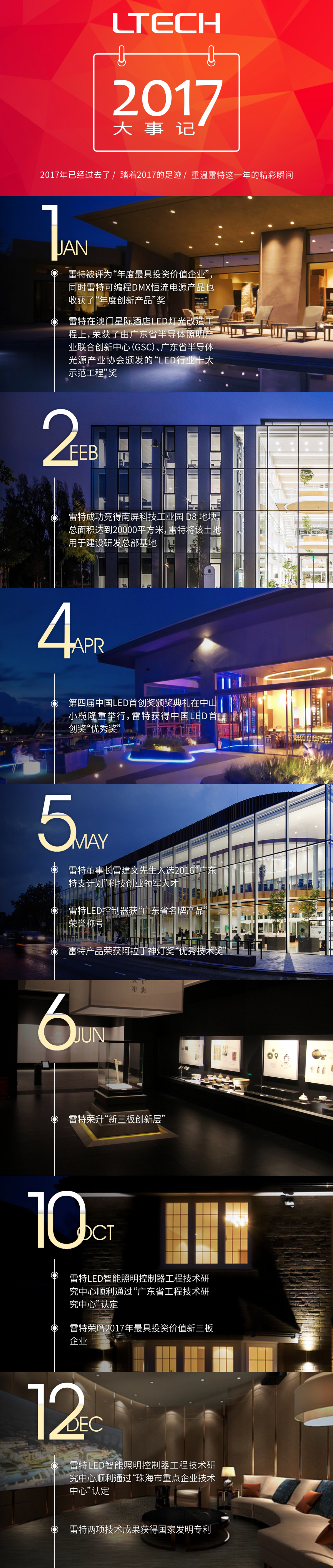 站在新的起点,踏上新的征程,回顾2017年,雷特收获累累、成绩斐然,向客户交出满意答卷。2018,雷特将继续加大技术研发的投入和自主创新能力,给客户智能照明的优质体验的同时,为照明行业提供先进的资源,促进智能照明行业的发展。