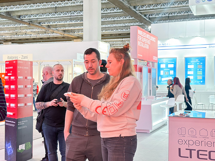 This year LTECH built an ultra large booth with 154㎡and the open booth design offered guests more freedom to visit booth and exchange ideas. Beyond that, the large smart knob panel allows guests to get a surprise gift through rotating. And the ultra-lightweight 6W smart LED drivers called as the "lipstick driver" by our global friends all made guests feel desired to try.