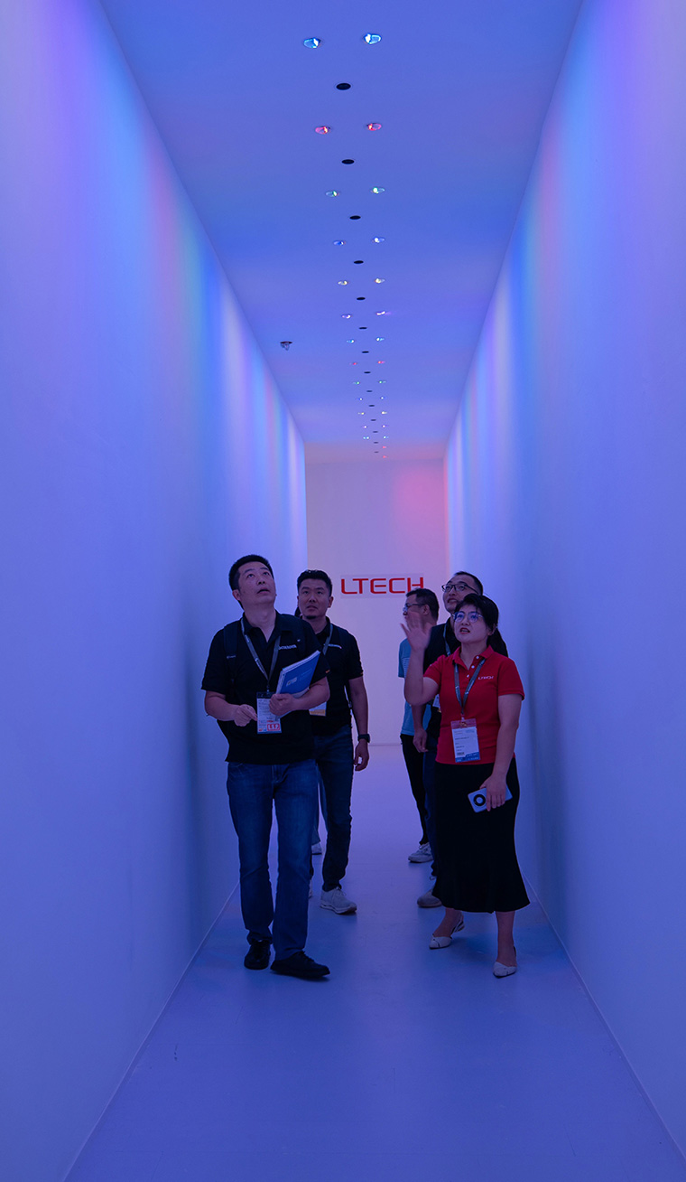 LTECH NFC Bluetooth RGBCW driver was fully upgraded in 2024, featuring a newly released professional-grade expansive color gamut, wide-ranging color temperature, and adjustable spectrum algorithm. This upgrade addresses issues such as DUV, color deviation, and color tolerance, allowing the light effects of lamps from different brands to be calibrated. It enables artificial lighting to closely mimic the spectrum of standard sunlight, meeting the specific spectrum requirements for medical health, elderly health, and educational lighting.At this year's Guangzhou International Lighting Exhibition, the creative LTECH RGBCW light and shadow corridor, a popular place for guests to take stunning photos, was powered by this advanced technology in combination with FOYAG lamps to achieve the lighting solution.