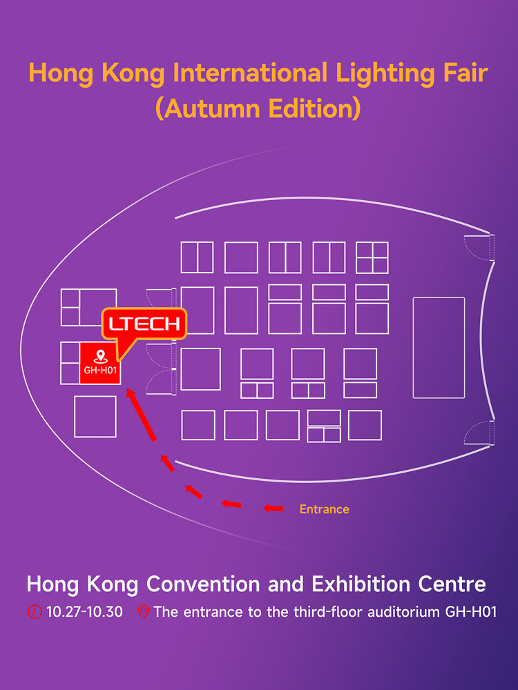 This year, LTECH will meet you at GH-H01, the entrance of the Great Hall in the Core Exhibition Area - Connected Lighting Pavilion, 3rd Floor, Hong Kong Convention and Exhibition Centre, and will showcase its annual blockbuster new products and new technologies at the exhibition!