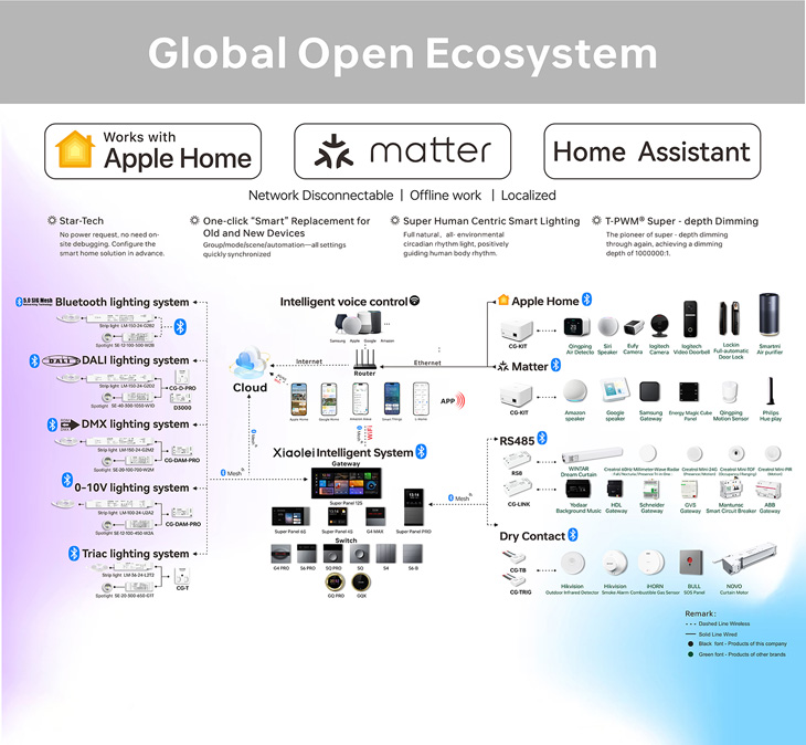 Developed by Xiaolei Smart Automation, our smart home system built on native Matter protocol.boasts in-depth integration with Apple Home ecosystem and seamless connectivity to global open smart home platforms including Google Home Amazon Alexa and Samsung SmartThings.It enables cross-brand interconnection for smart devices worldwide.