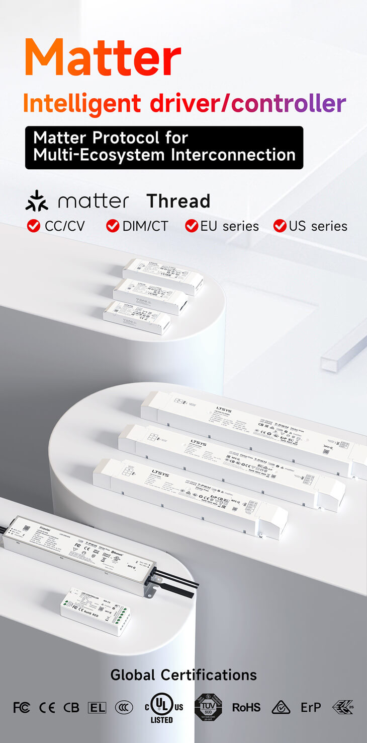 The series of knob products integrate DMX, 0-10V, DALI, and TRIAC four wired protocols making intelligent control of various lighting projects more convenient.Two major series are designed: Matter-to-wired protocol and Bluetooth-to-wired protocol.Compatible with the global Matter protocol ecosystem platforms such as Apple Home, Google Home, Amazon Alexa,Samsung SmartThings and L-Home.The knob supports stepless dimming and diverse interactions including single-click, double-click, rotation, and long press.Four scene keys enable quick access to a wide range of lighting effects.