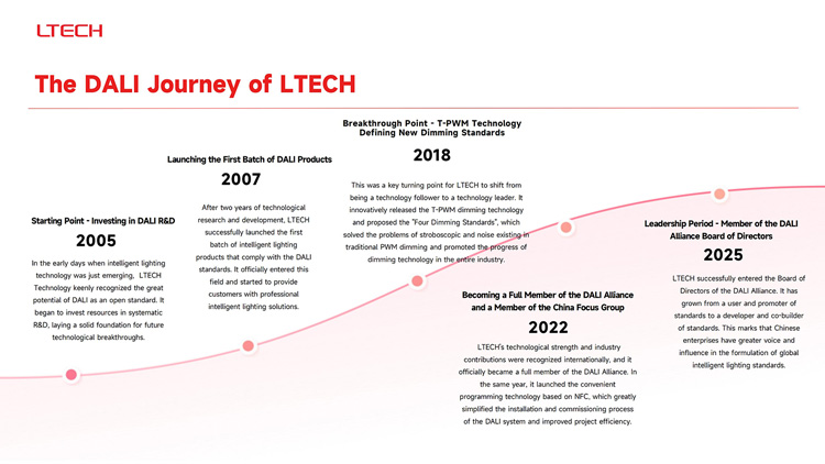 The 6th DALI Alliance China Ecological Partners Conference and DALI China Awards Ceremony has successfully concluded. As one of the core sponsors of this grand event, LTECH is honored to gather with leading figures in the lighting industry. We will continue to fulfill our responsibilities as a member of the DALI Alliance Board of Directors, with technological innovation at our core and an open ecosystem as our guide. We will continuously explore the application possibilities of DALI technology in more scenarios, contribute more to the development of the smart lighting industry, and work together with industry partners to draw a new blueprint for smart lighting.