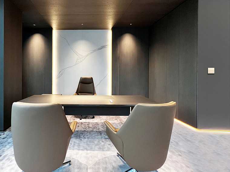 The two-story sales center space is includes office meeting areas for employees, negotiation areas for customers, etc. The solution uses LTECH Super Smart Panel 6S as the central control gateway, combined with super smart switches, Bluetooth human sensors, LED Bluetooth remote controls, etc., to intelligently control the entire space equipment in a diversified way to create a more stable and convenient scene control.